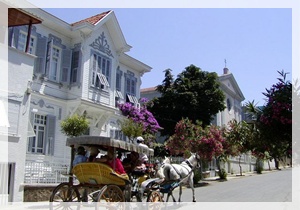 جزر الأميرات الأربع، ومن ثم النزول في أكبر الجزر والتي تعرف بـ "بيوك أضا"،